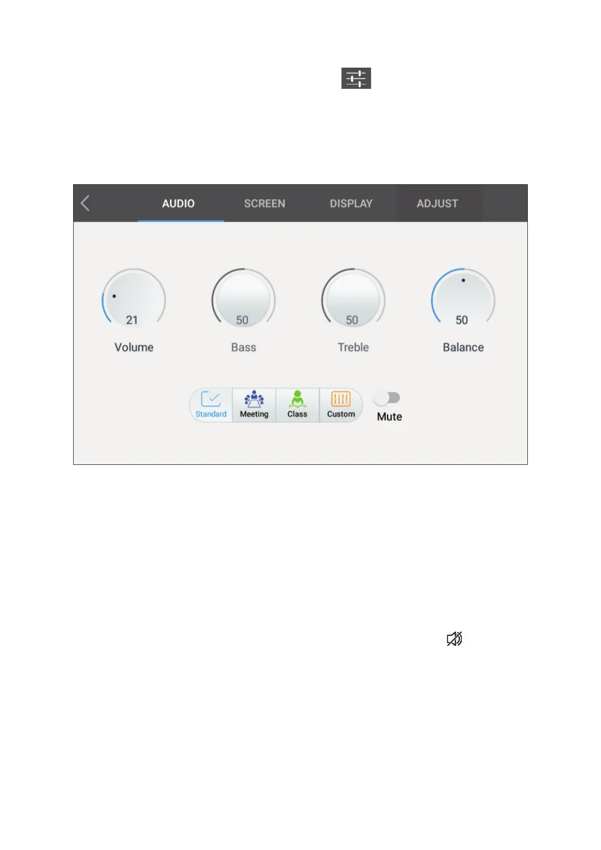 4. Addionally, you can select one of the preset audio proles: Standard, Meeng,