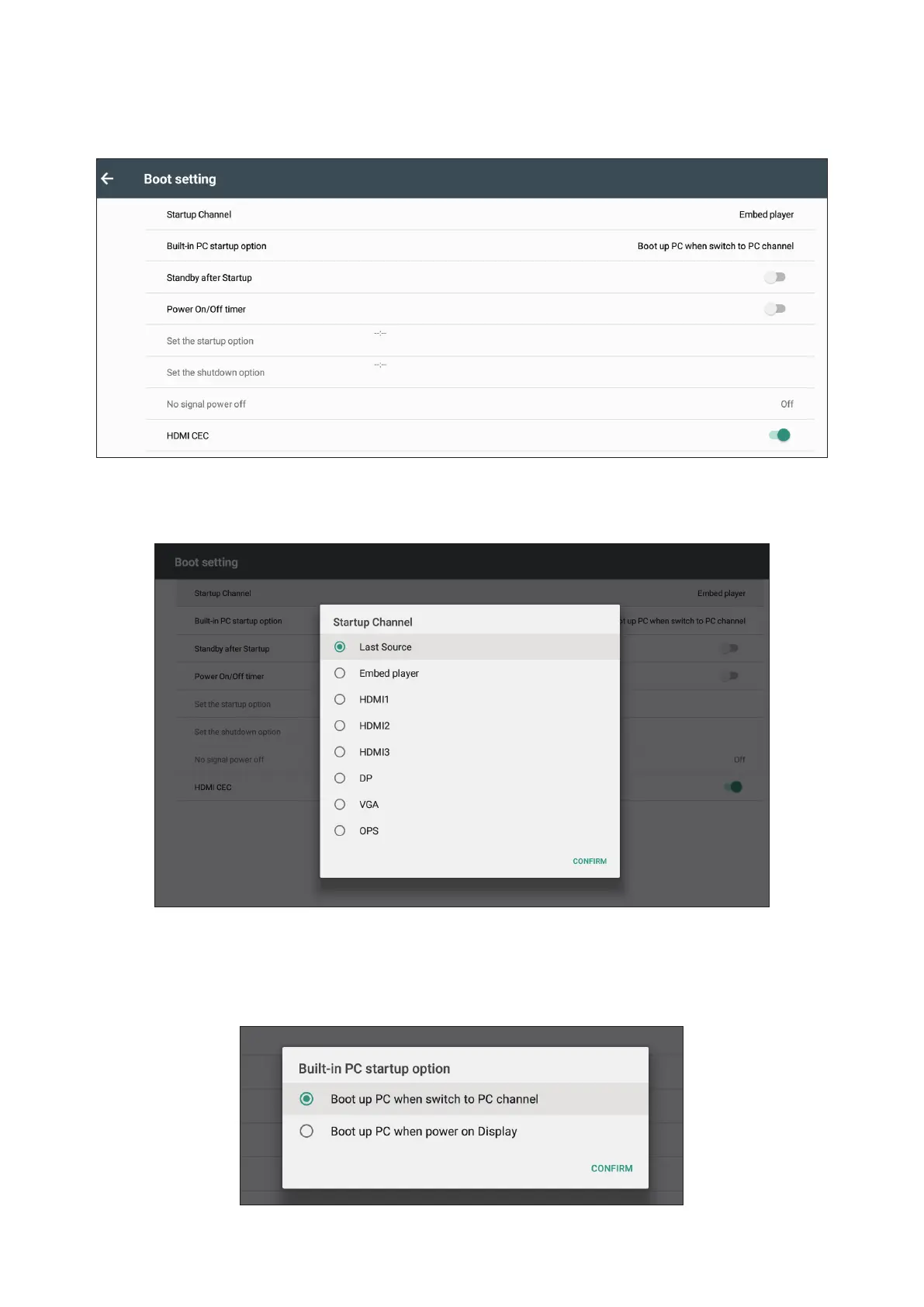 Set the Startup channel, Built-in PC startup opon, Standby aer Startup, Power