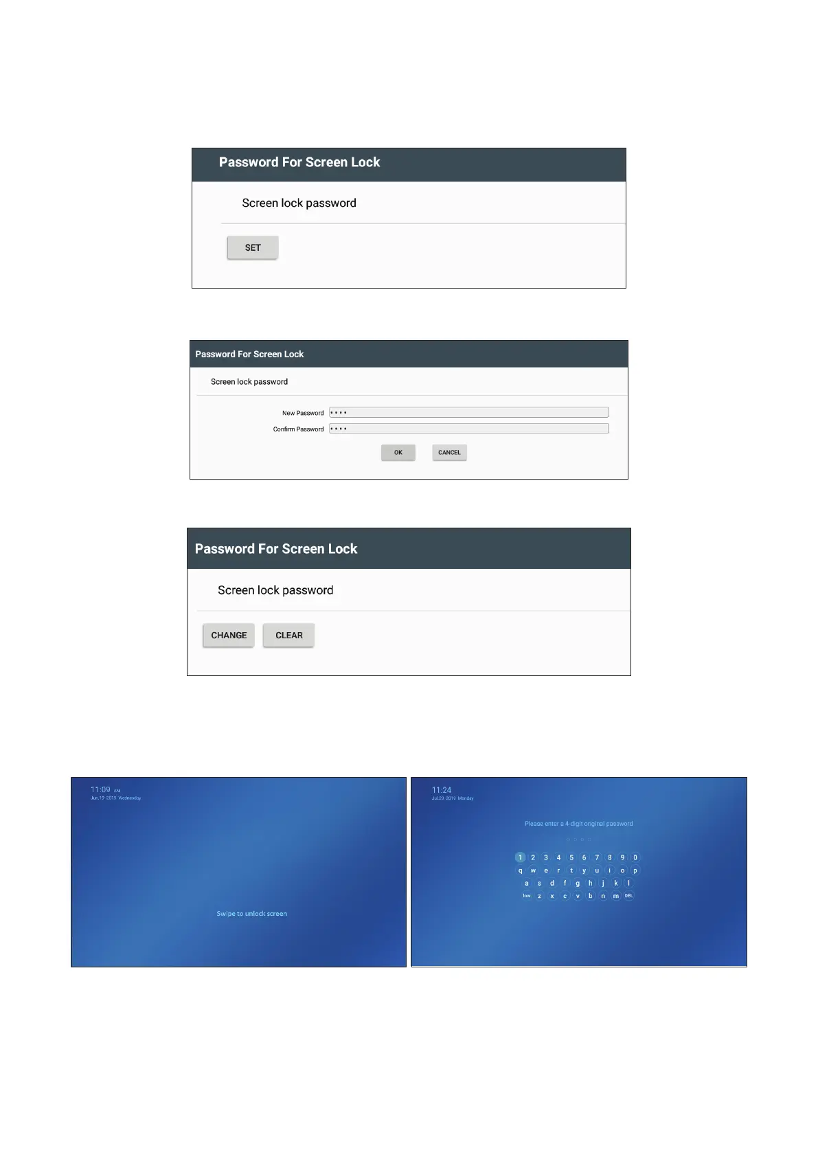 Aer a password is set, when selecng “Screen Lock” from the applicaon menu