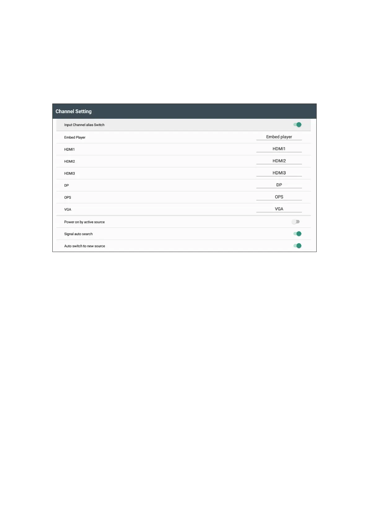 Enable/disable Input Alias Switch, Power On by Acve Source, Signal Auto Switch,
