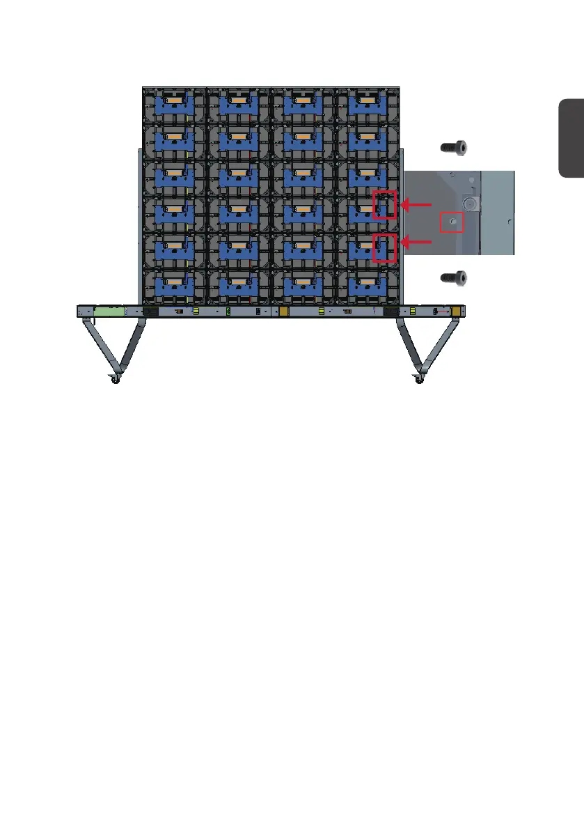  對其餘的中間機櫃重複步驟,使用隨附的螺絲將機櫃固定至右