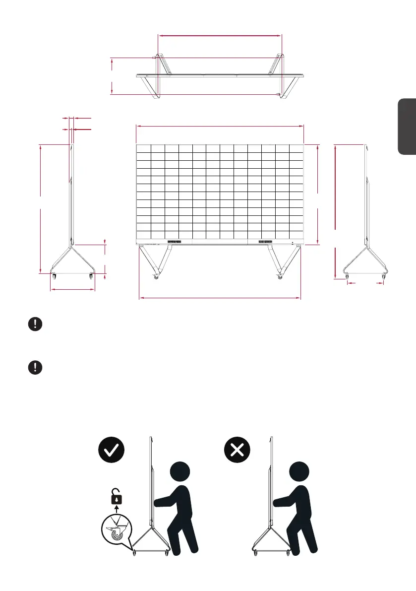 请勿按压显示器正面。移动支架前请务必将滚轮解锁。否则,可能导致设