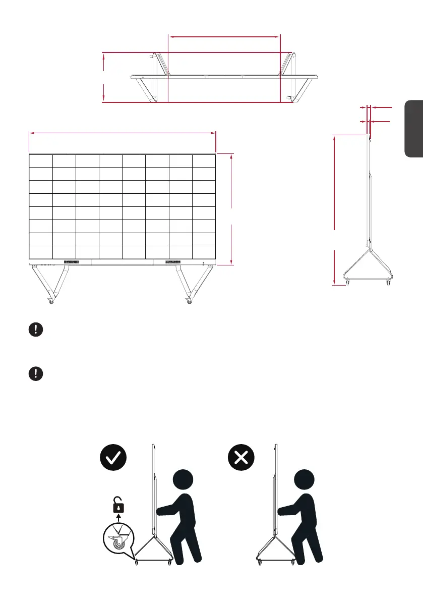 请勿按压显示器正面。移动支架前请务必将滚轮解锁。否则,可能导致设