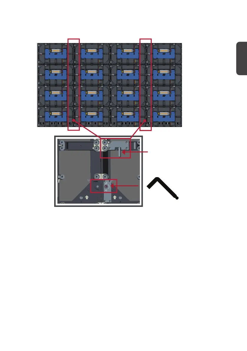 使用內六角扳手對準孔洞,以接合鎖定螺栓。