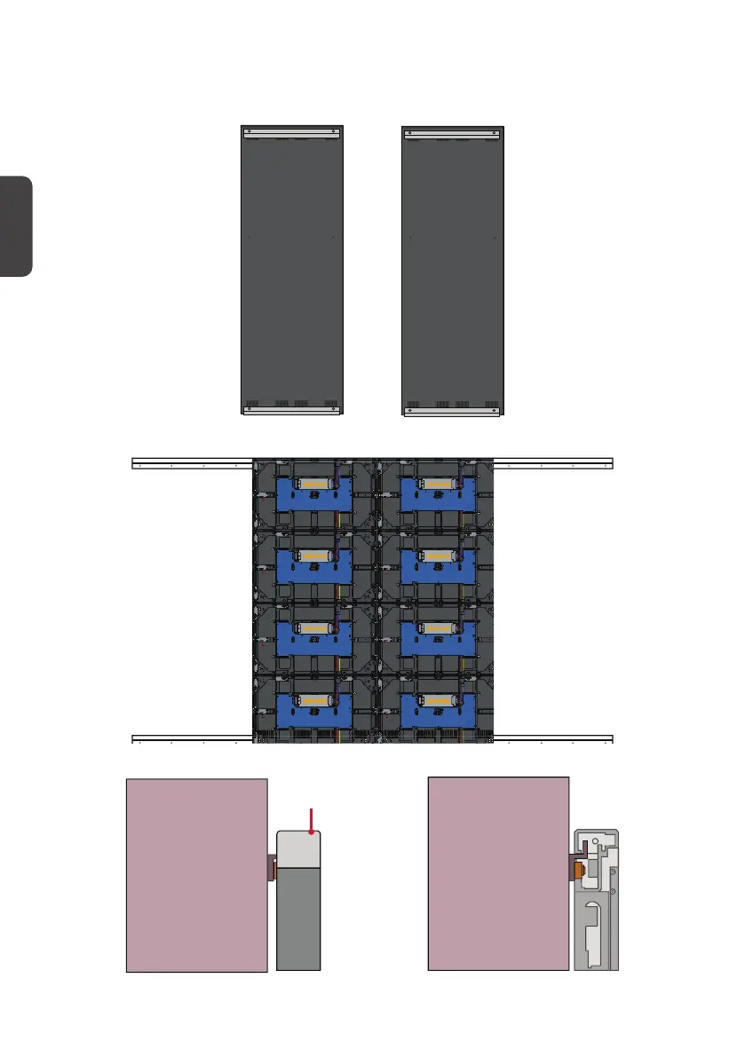  确保两各中间机壳后方的安装支架位于下图所示的上下安装位置: