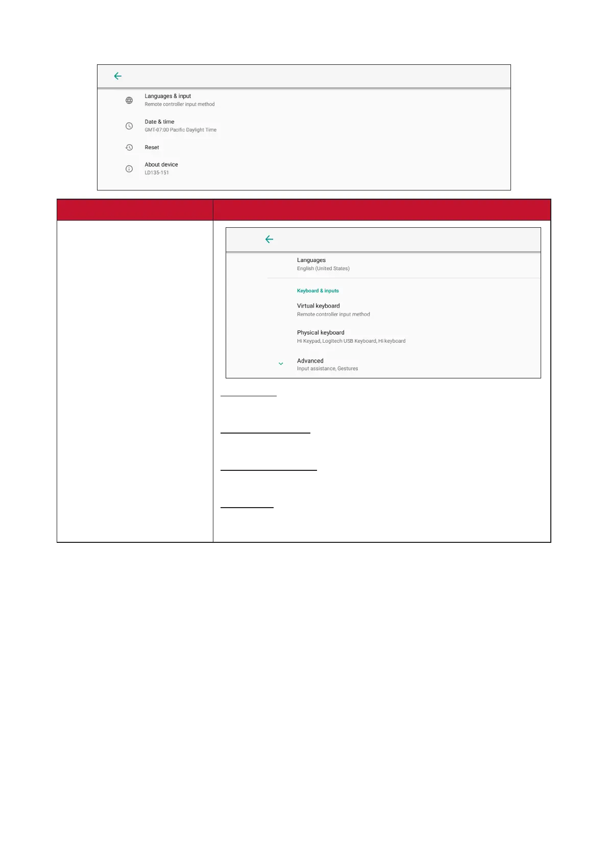 Bluetooth and physical keyboard input sengs.