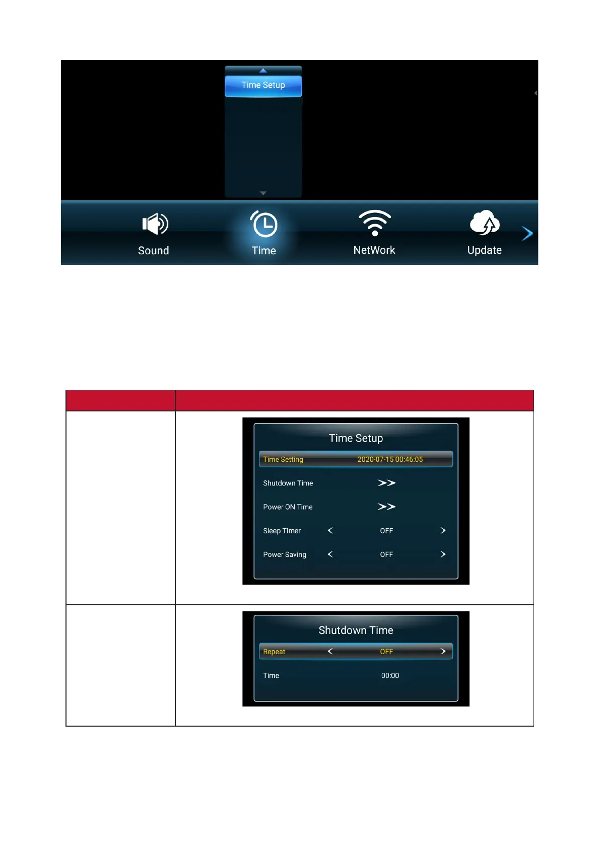 2. Then press OK or use q/p/t/u on the remote control to select the Time menu.
