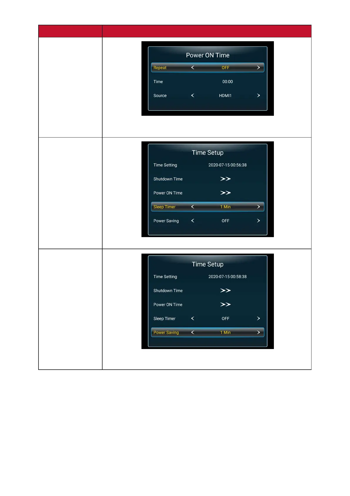 Set a specic me for the display to enter stand-by mode.