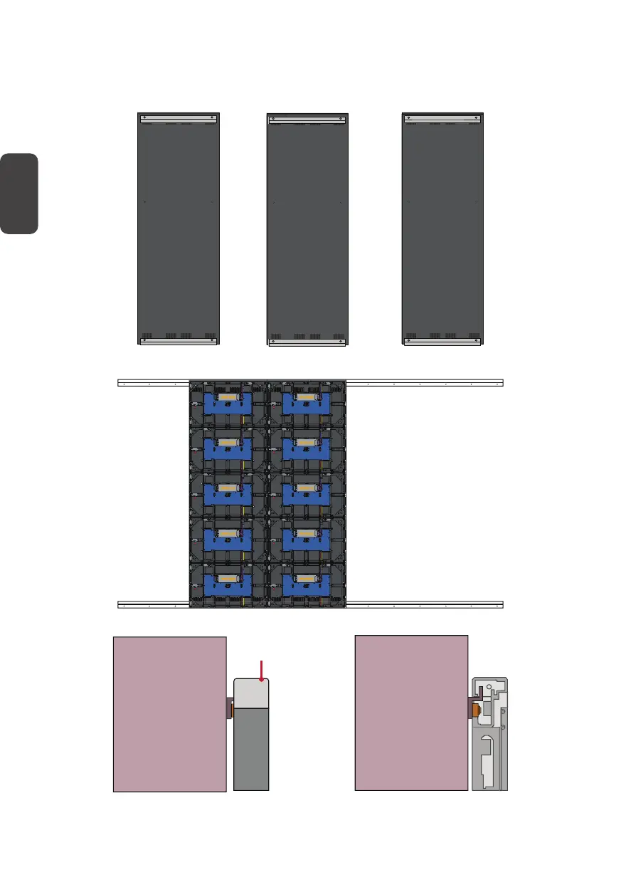  确保三各中间机壳后方的安装支架位于下图所示的上下安装位置: