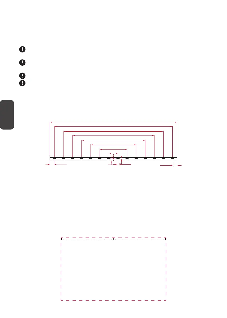 NOTA: La altura de los soportes para instalación en pared superiores no deben estar a