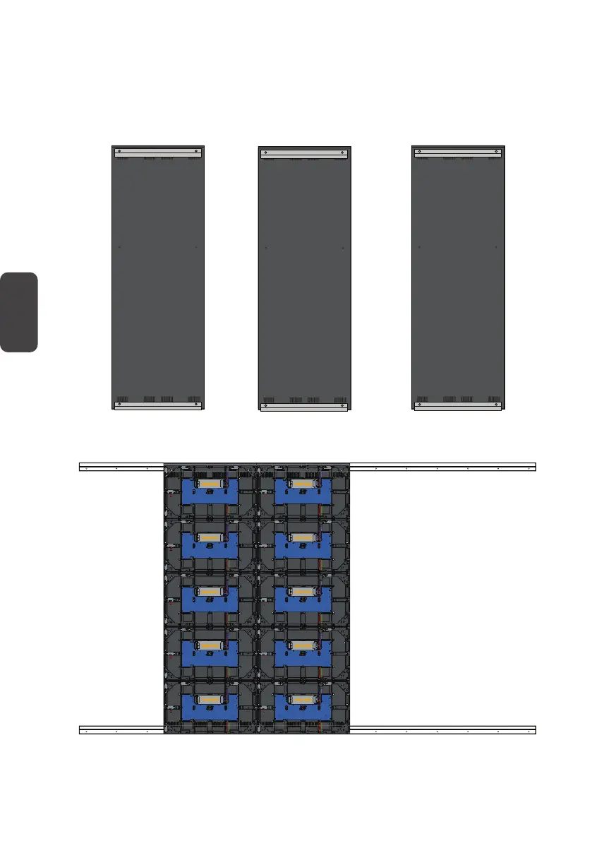  Levante con cuidado cada armario central hasta los soportes para instalación en