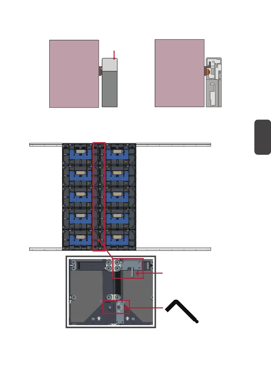 Empuje cada tornillo de bloqueo y bloquee cada gancho con la llave Allen para