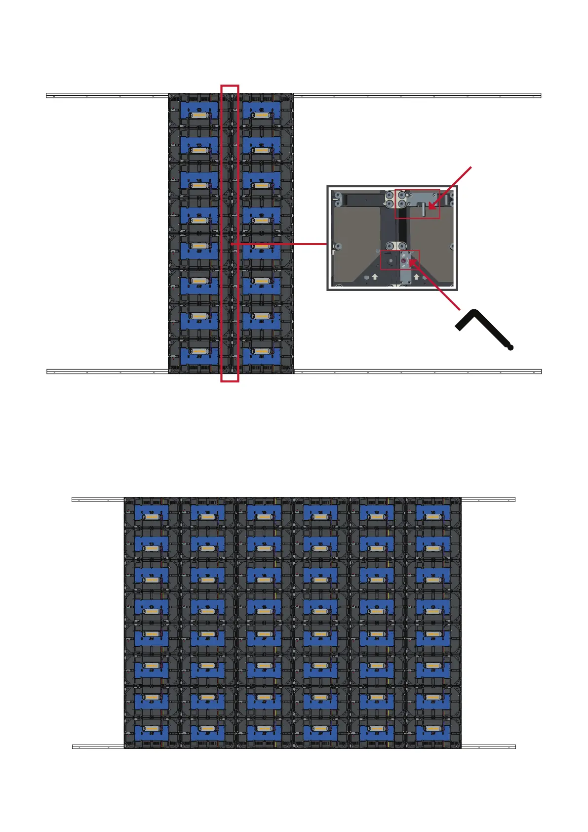 NOTE: There are eight (8) Locking Bolts and 16 Hooks between each cabinet.