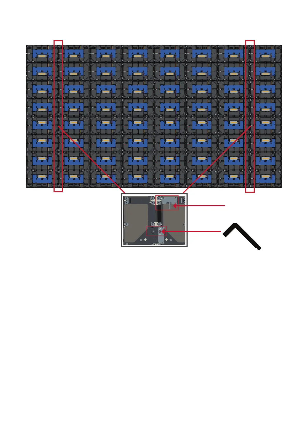 4. Push each Locking Bolt and lock each Hook with the hex tool to securely connect