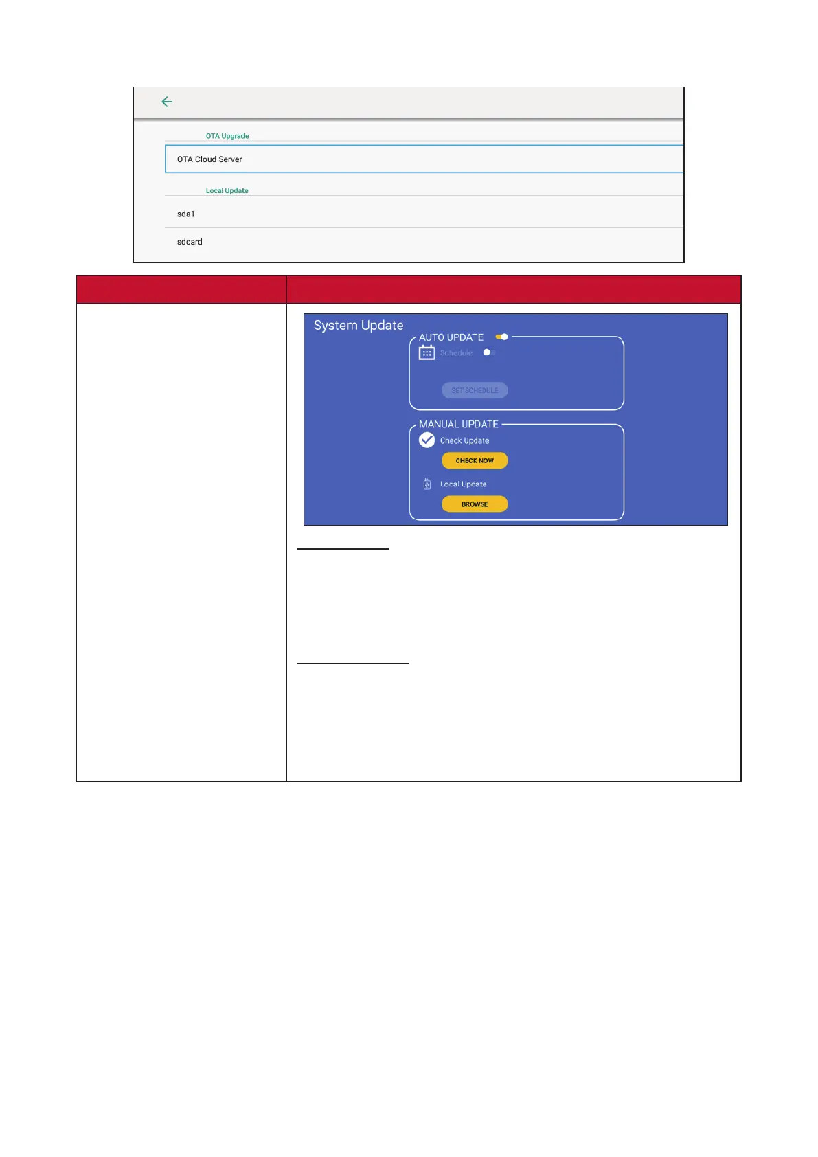 Check Update: The system will check for the latest FW