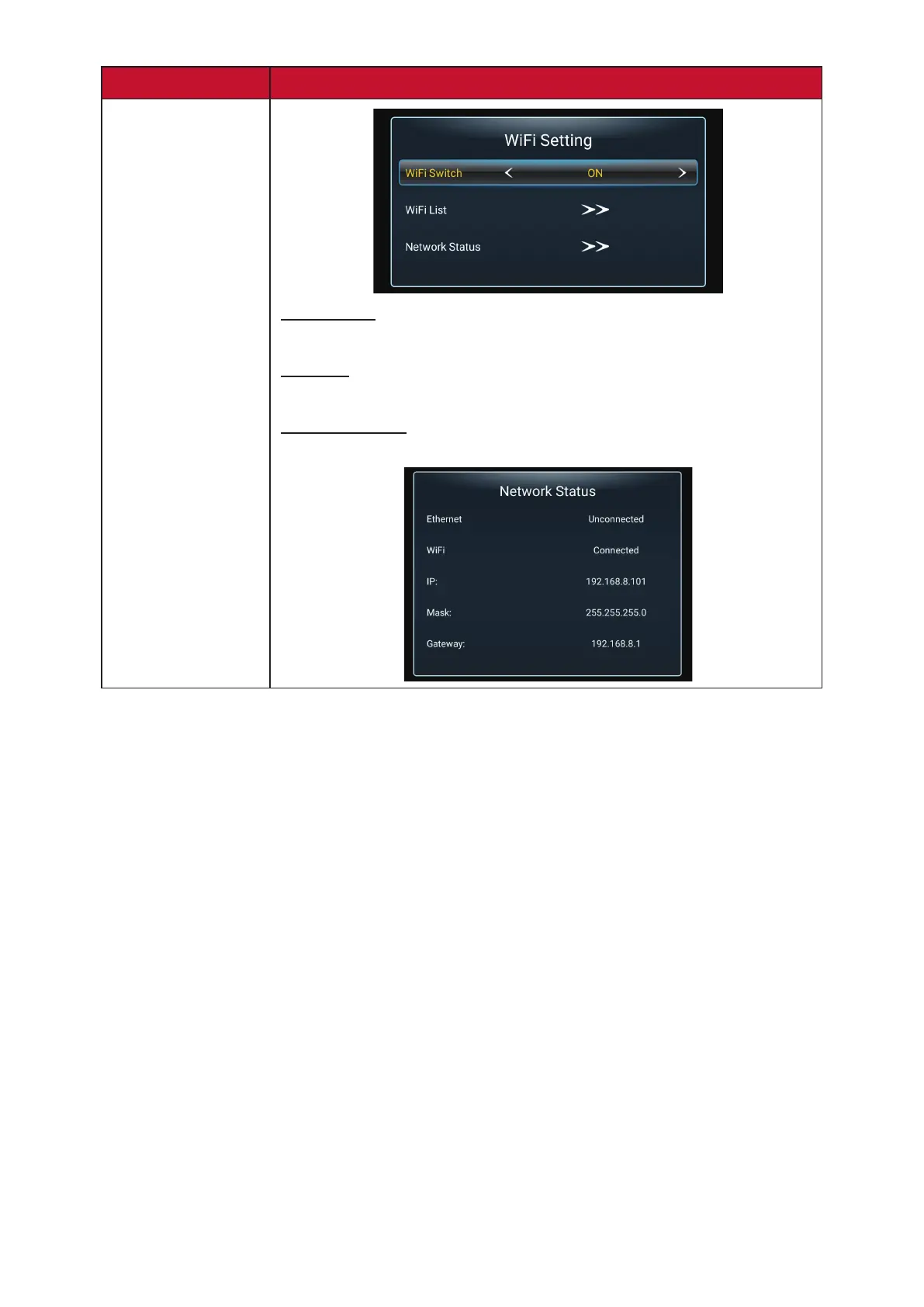 View the network connecon status.