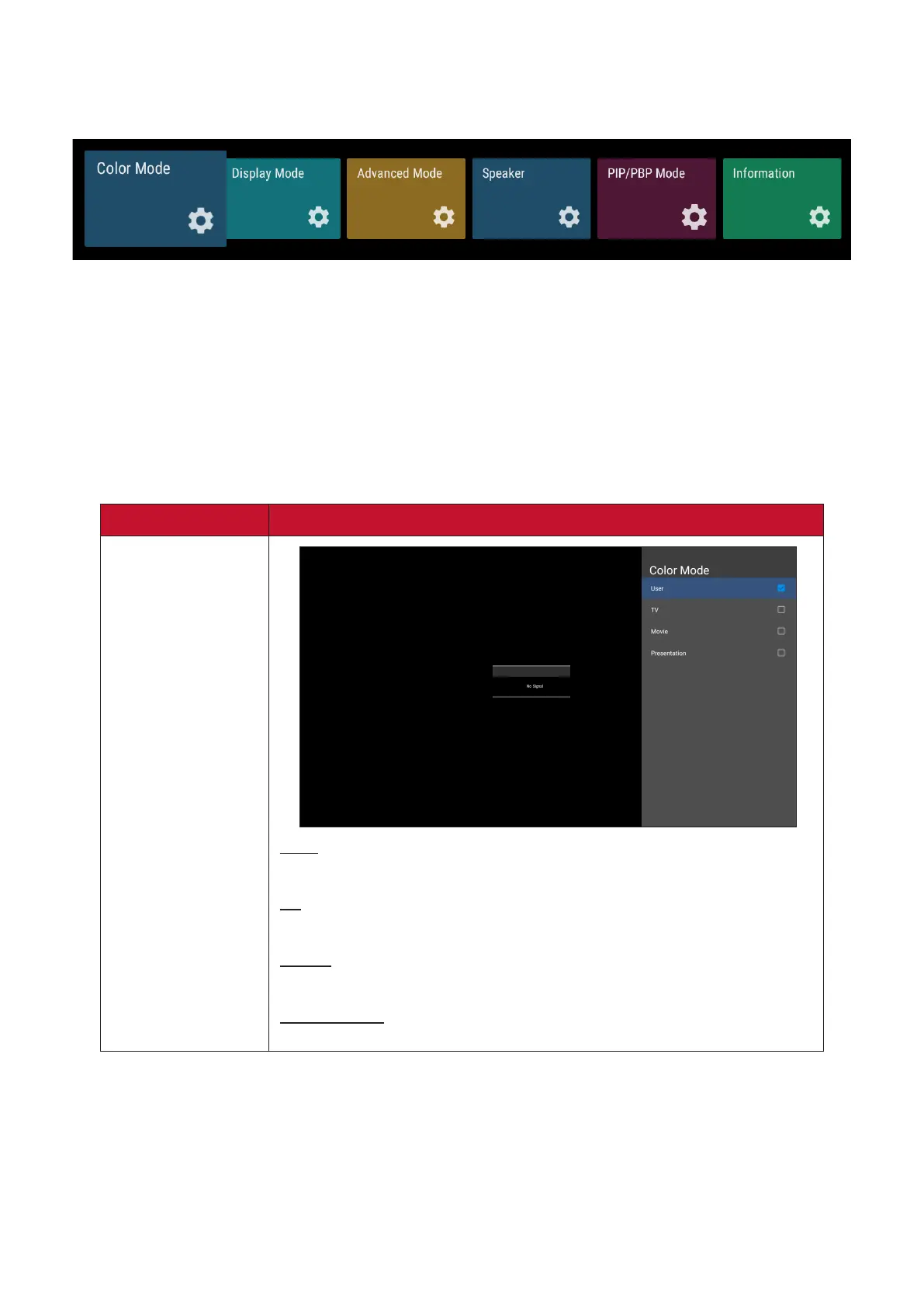 2. Then press OK or use q/p/t/u on the remote control to select the Color Mode