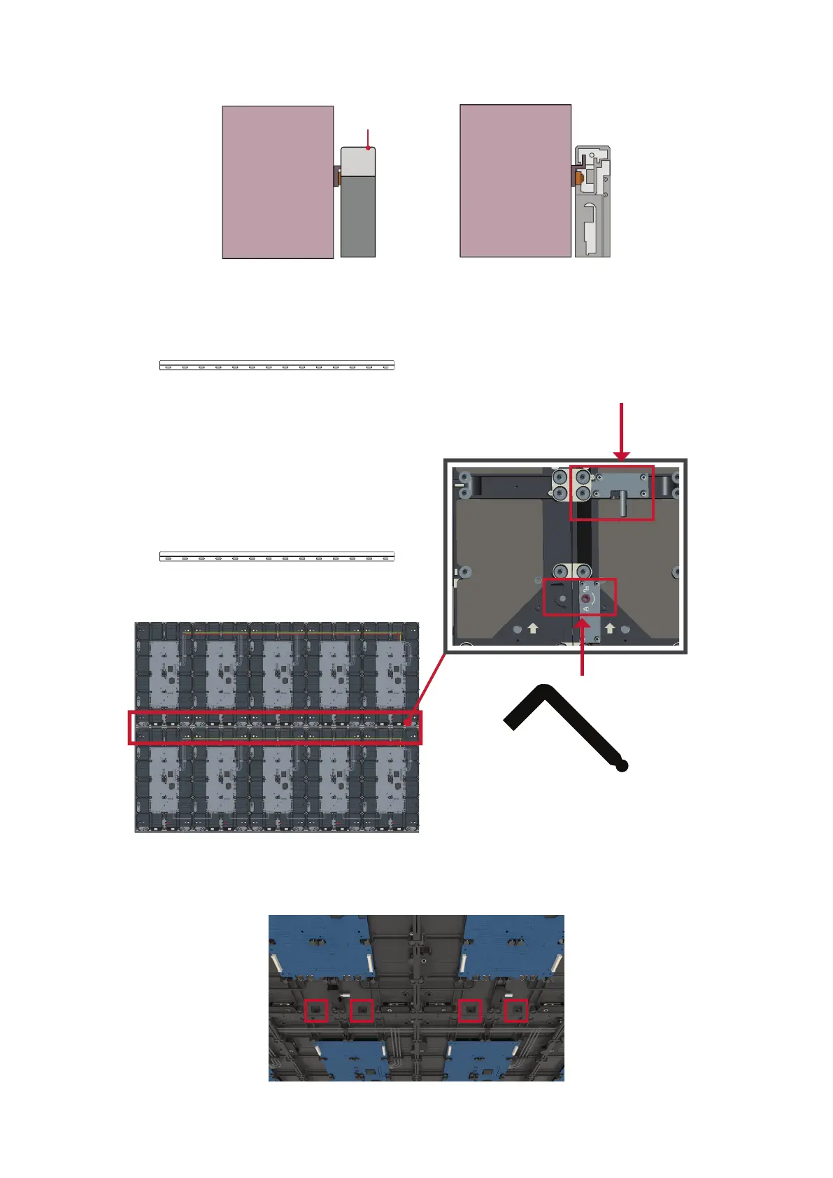 4. Push each Locking Bolt and lock each Hook with the hex tool to securely connect