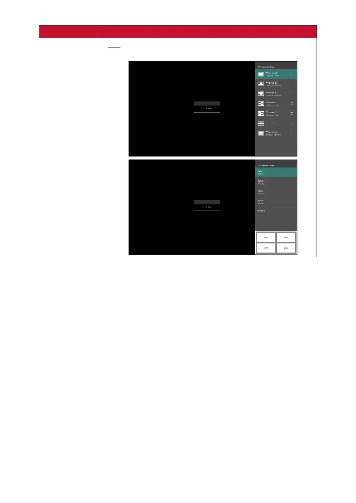 Display up to four (4) windows on screen at the same me.