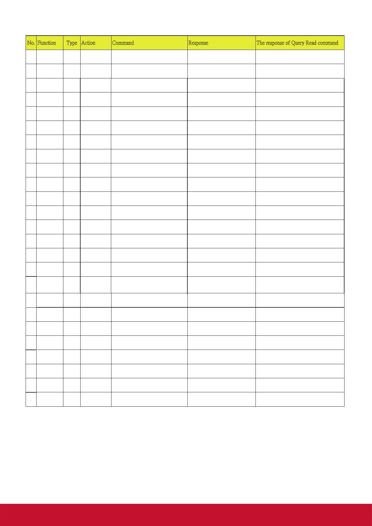 No. Function Type Action Command Response The response of Query Read command