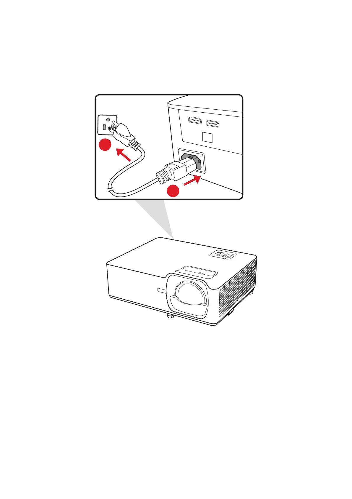 1. Connect the power cord to the AC IN jack at the rear of the projector.