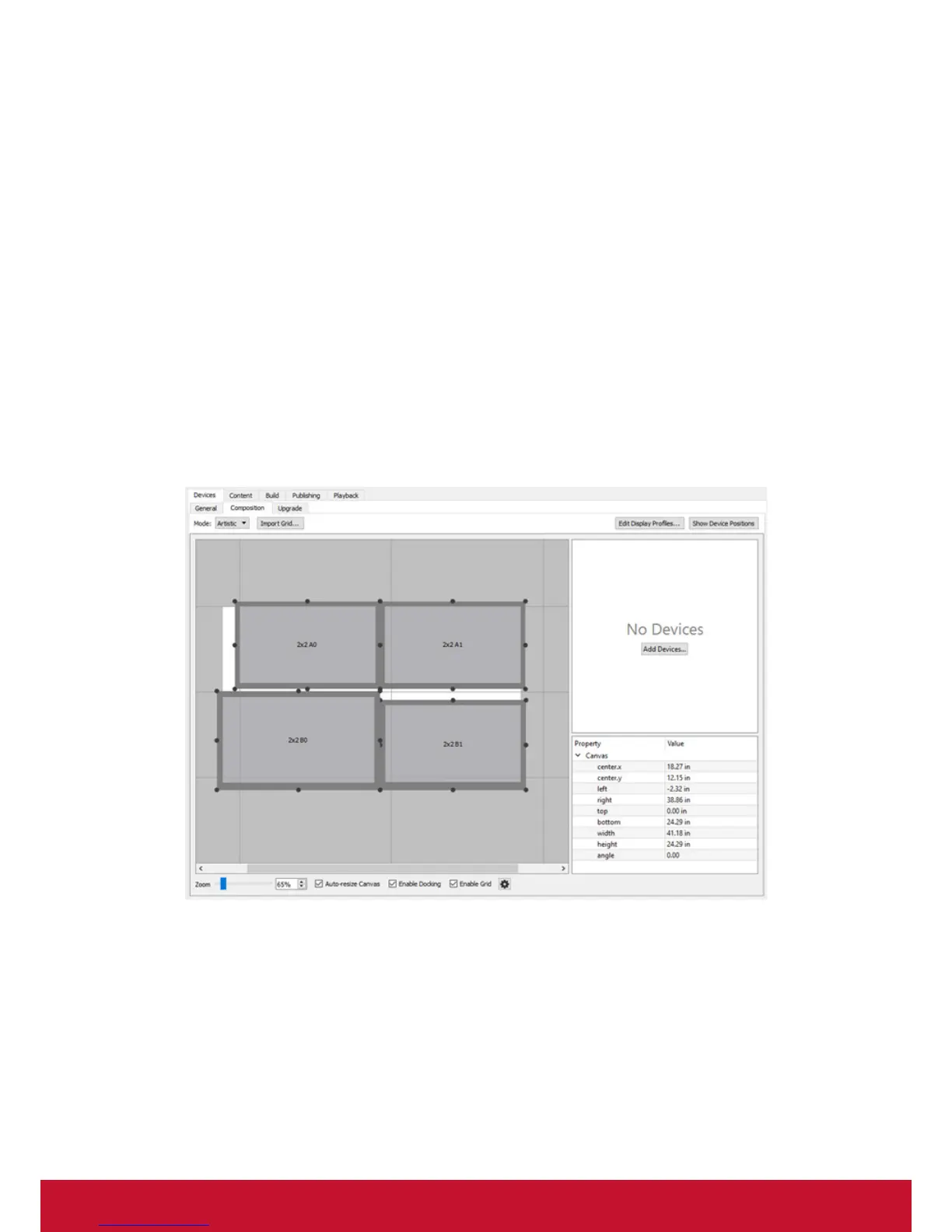 Follow the procedures below to configure a video wall composition in Artistic mode.