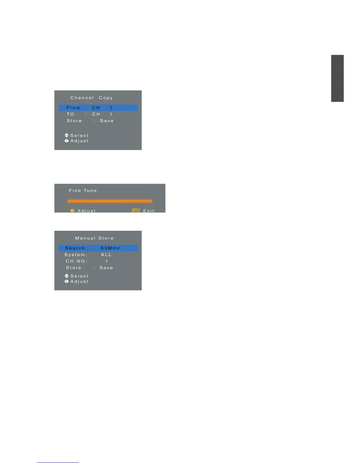 Fine Tune: To adjust the frequency of channels in order to reduce the noise in picture.