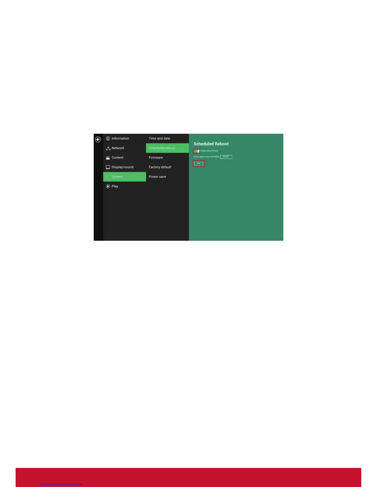 Scheduled Reboot allows the signboard to reboot at an assigned time