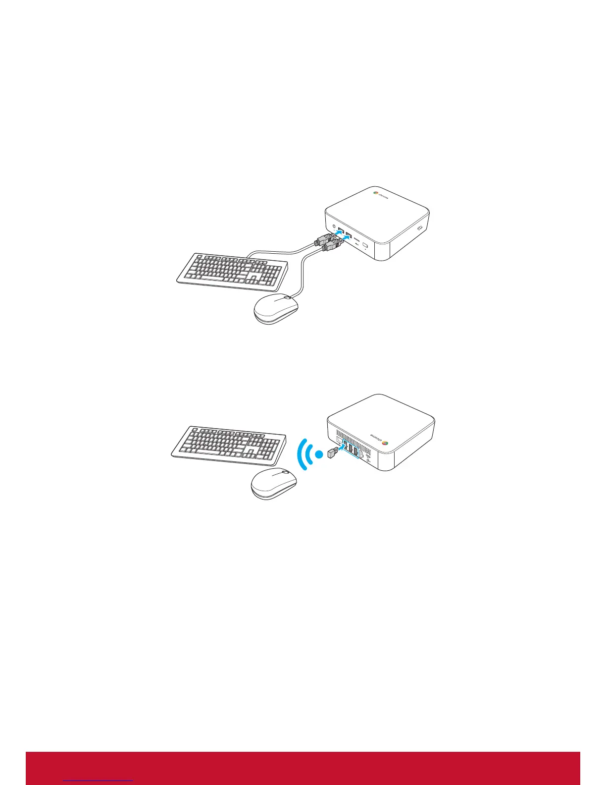 Your Chromebox supports both wired and wireless mouse and keyboard.
