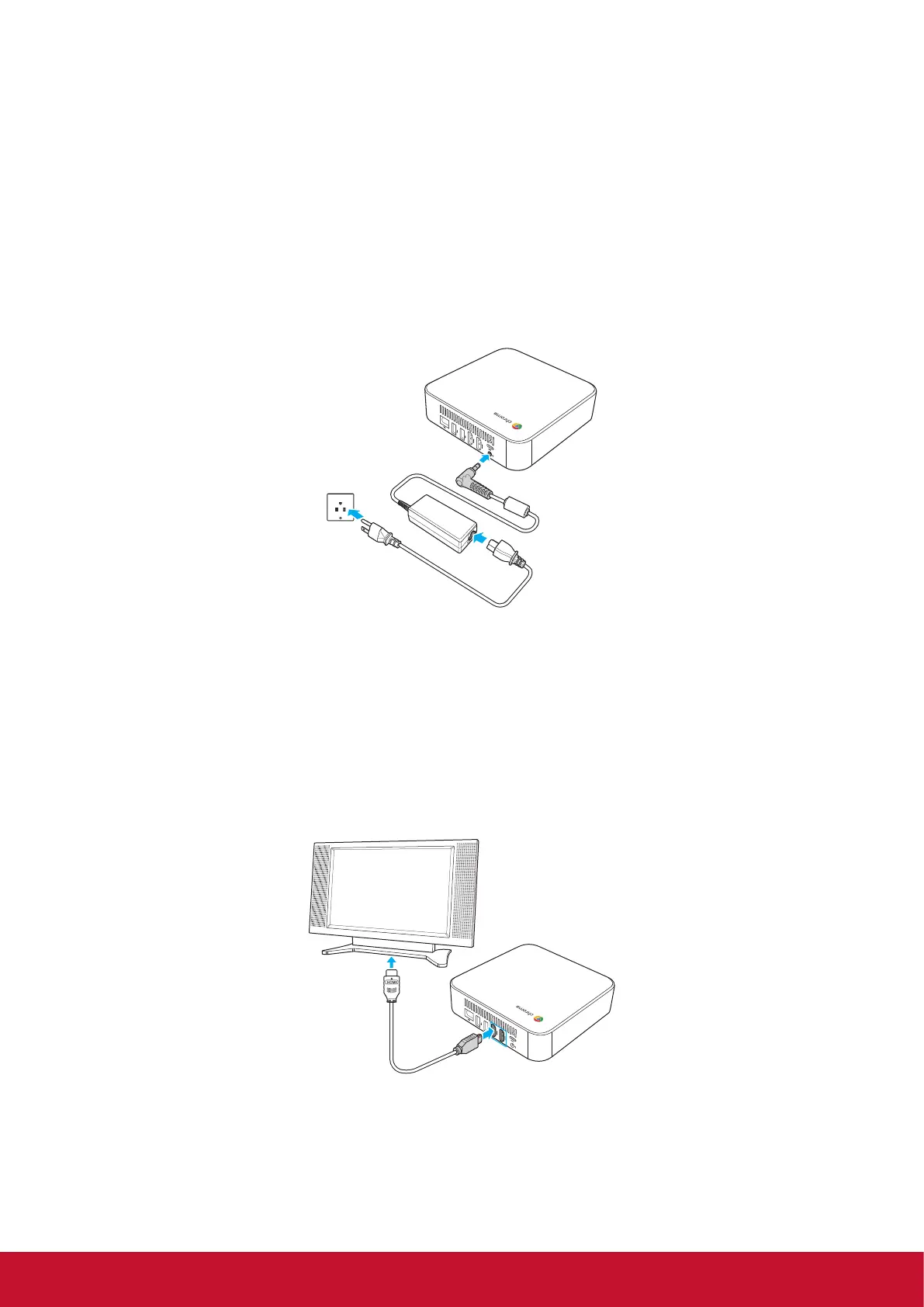 2. Connect the AC adapter to the DC-in jack of your Chromebox.