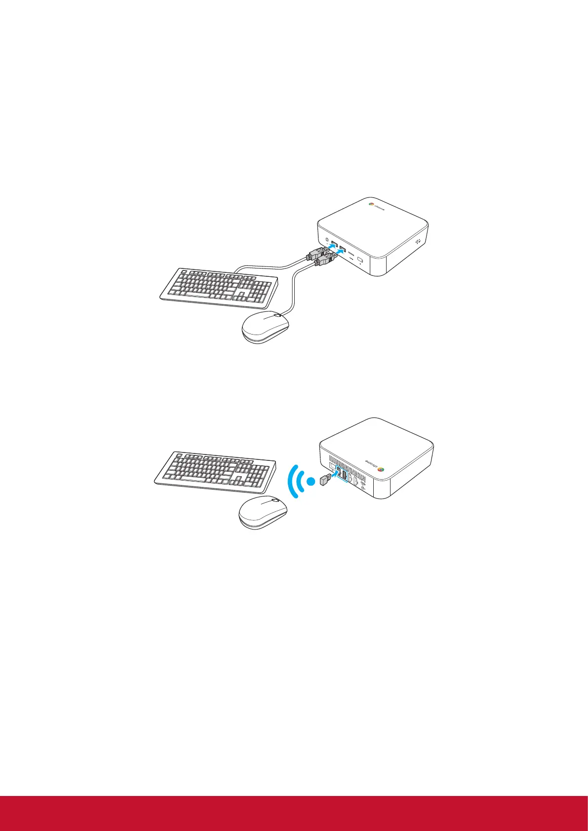 Your Chromebox supports both wired and wireless mouse and keyboard.
