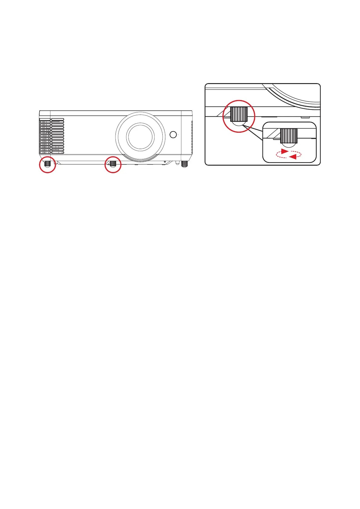 The projector is equipped with two (2) adjustment feet. Adjusng the feet will