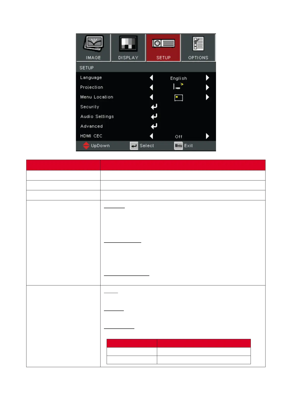 Setup Menu