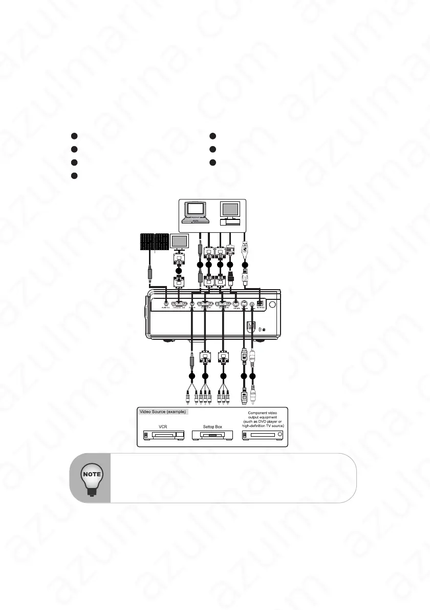 The cables that come with the projector may differ from the above illustration.