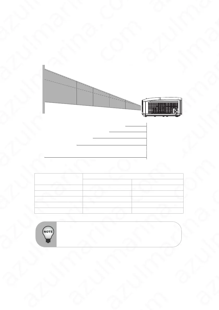 Refer to the graphic and table below to determine the screen size and projection distance.