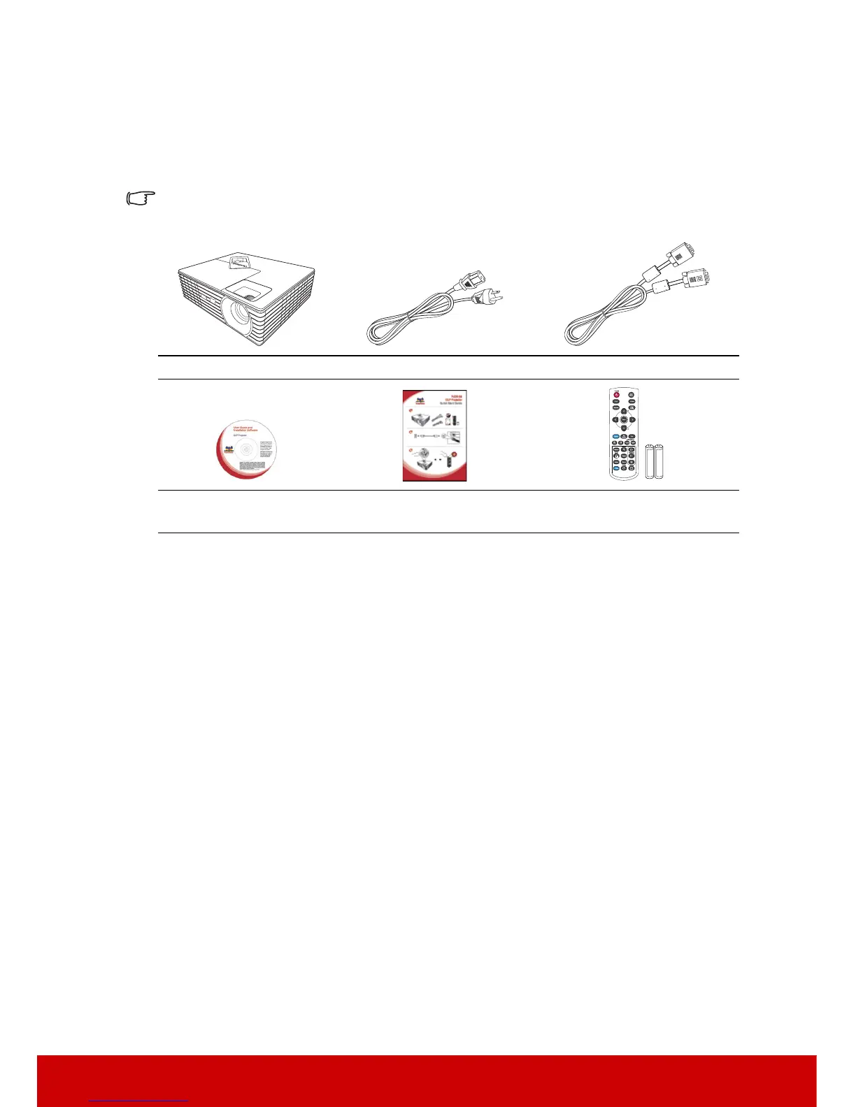 Carefully unpack and verify that you have all of the items shown below. If any of these