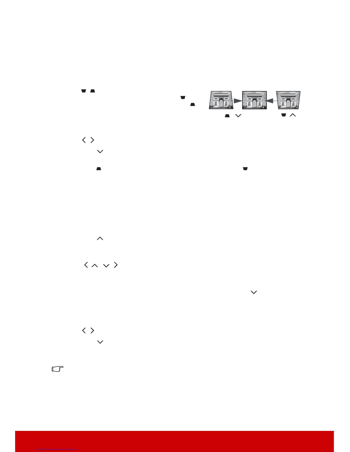 3. Press to correct keystoning at the top of the image or press to correct