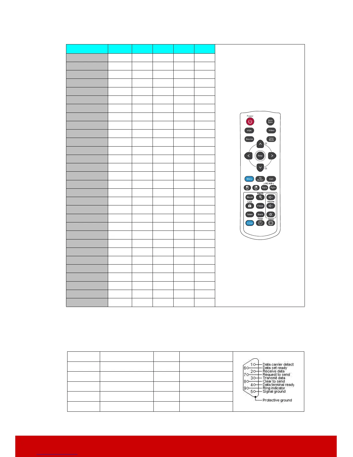 RS232 command table