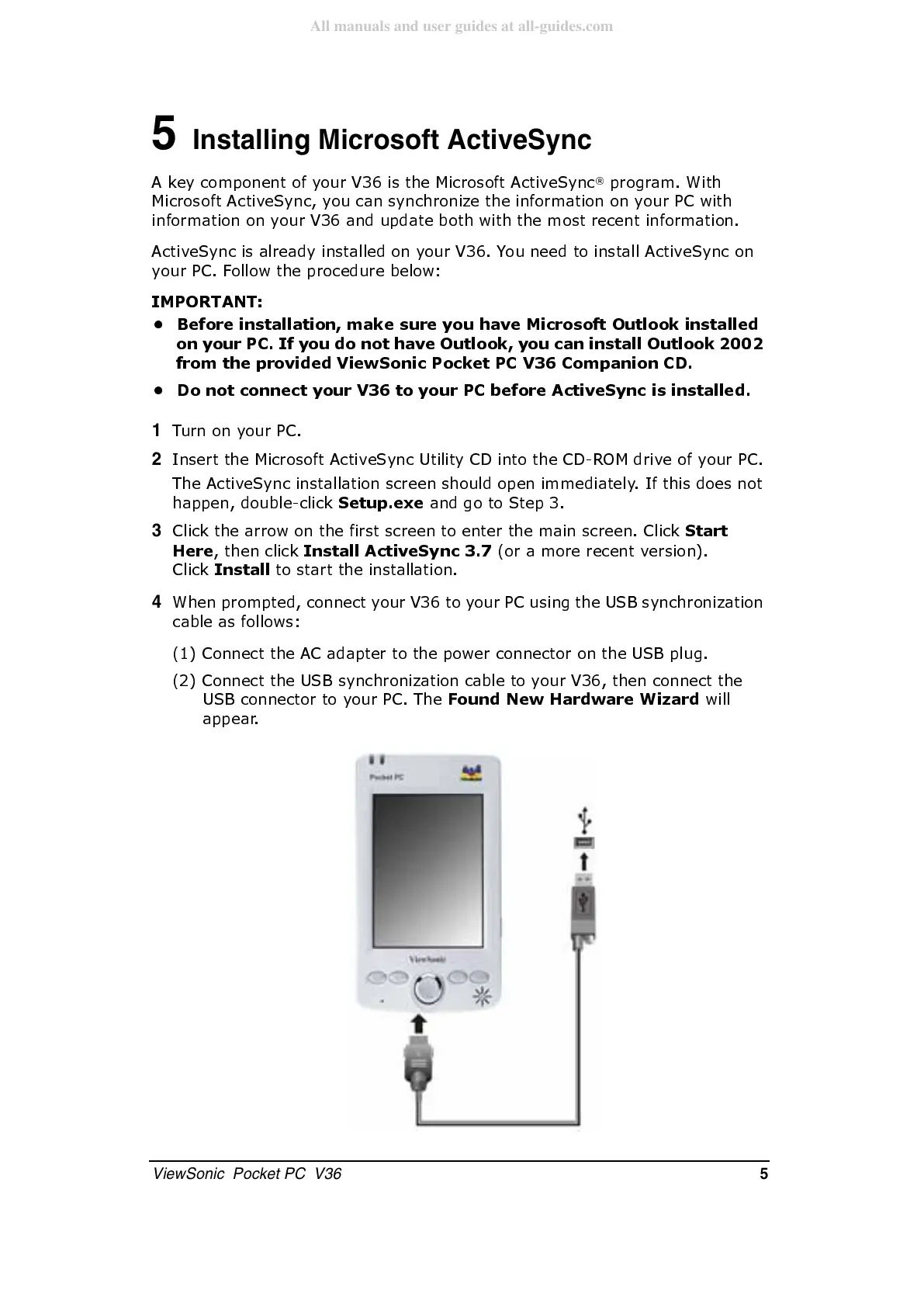 ViewSonic Pocket PC V36 - Installing Microsoft Activesync