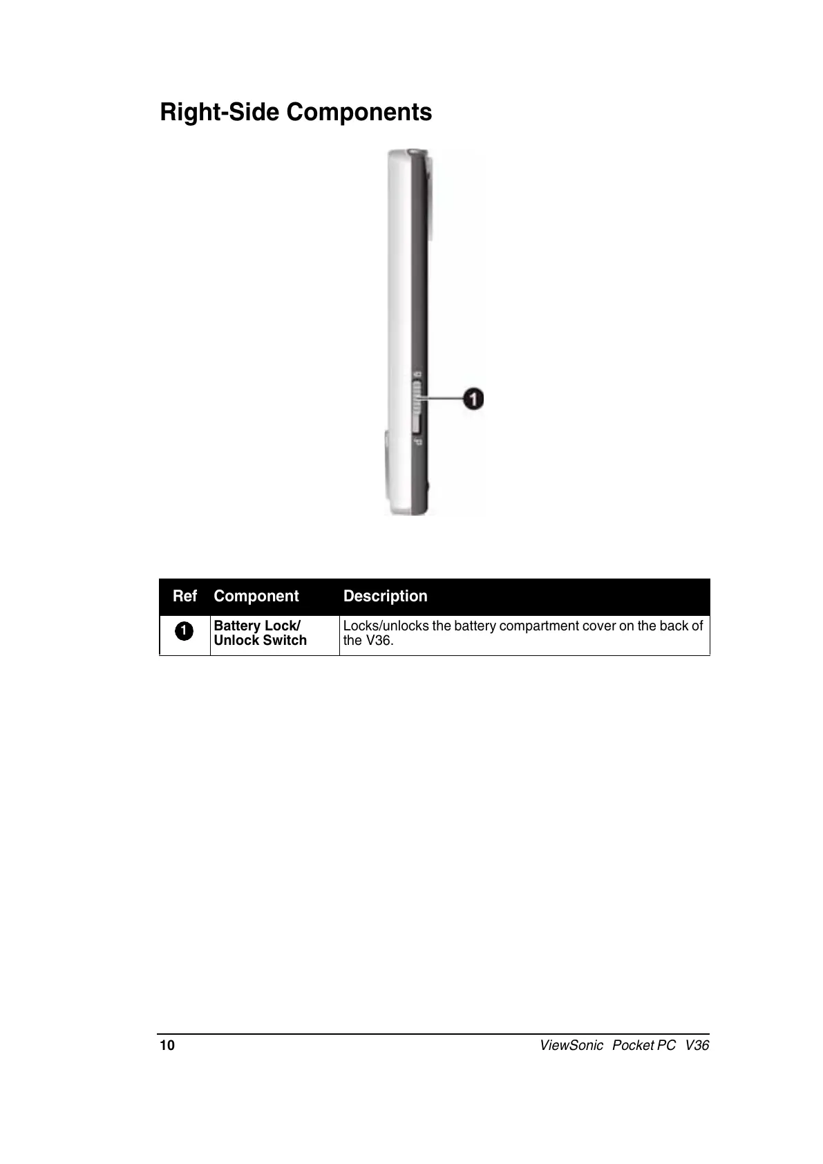 ViewSonic Pocket PC V36 - Right-Side Components