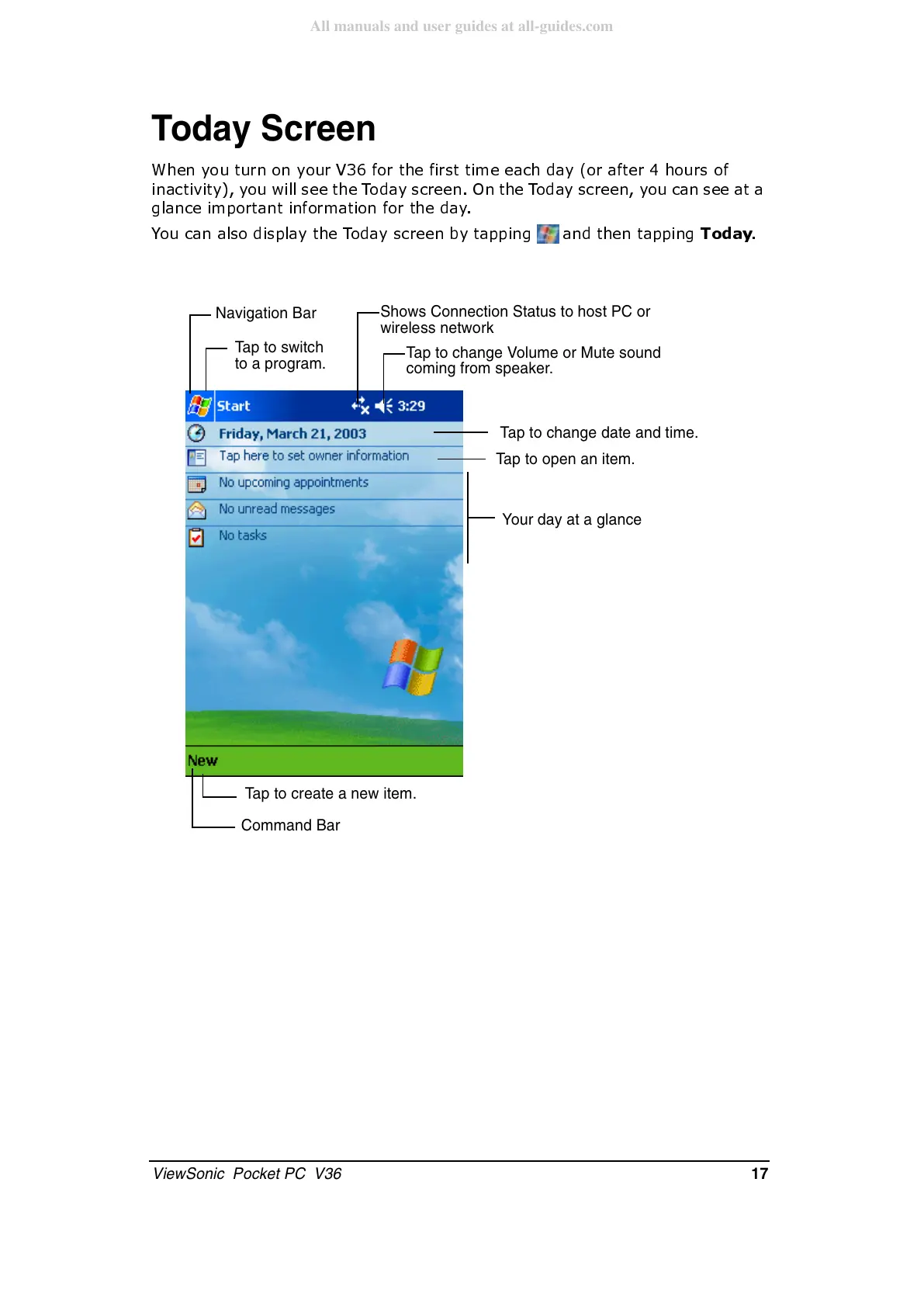 ViewSonic Pocket PC V36 - Today Screen