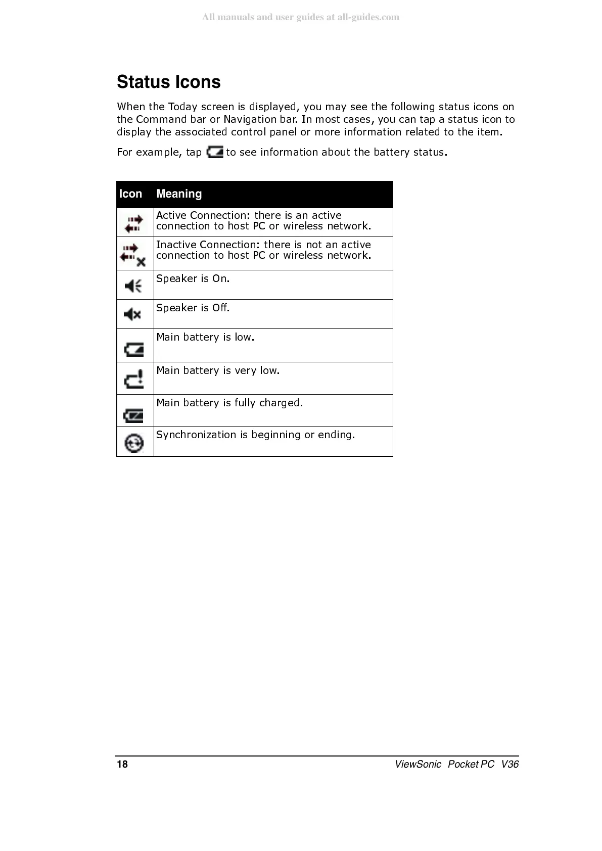 ViewSonic Pocket PC V36 - Status Icons