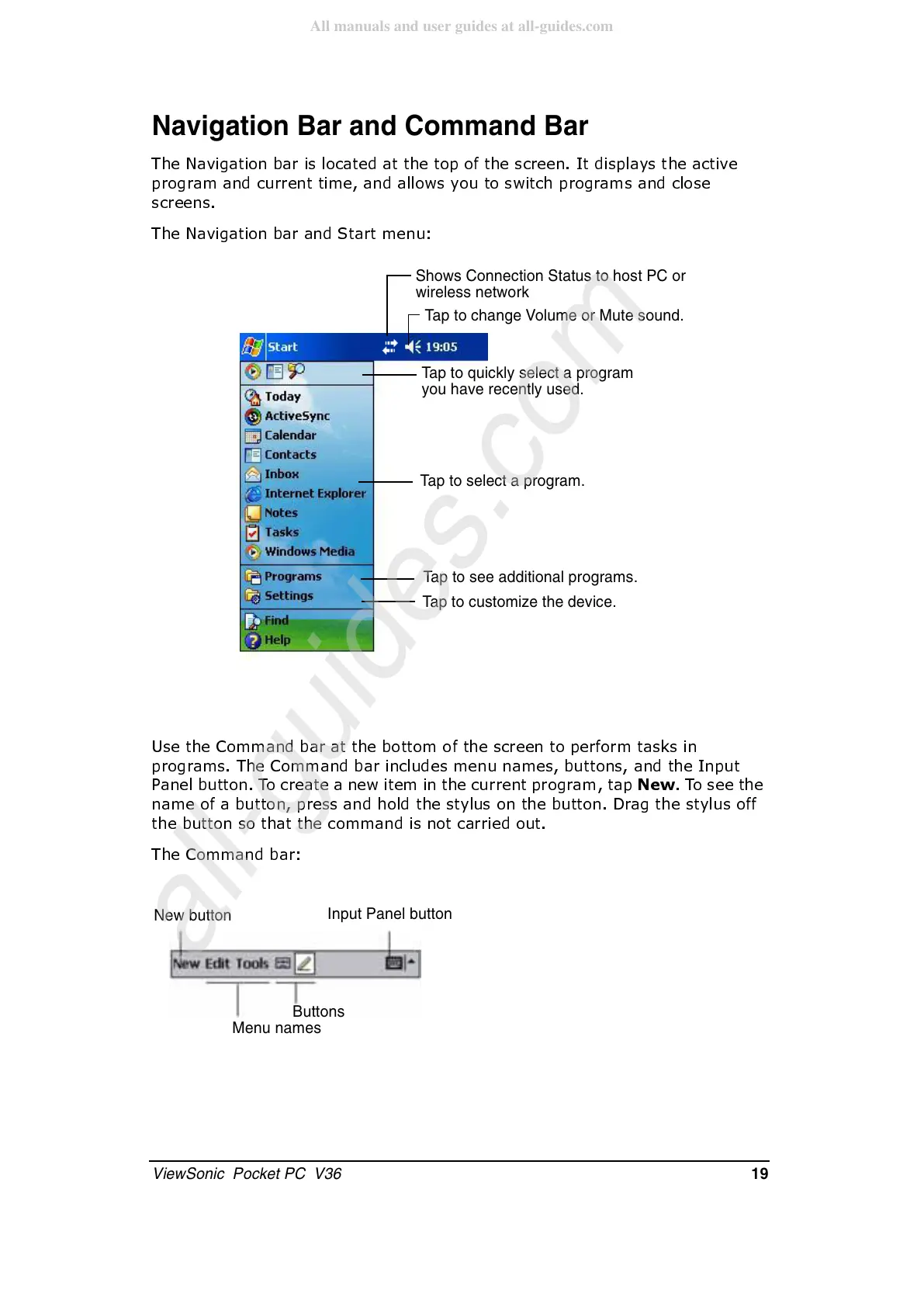 ViewSonic Pocket PC V36 - Navigation Bar and Command Bar