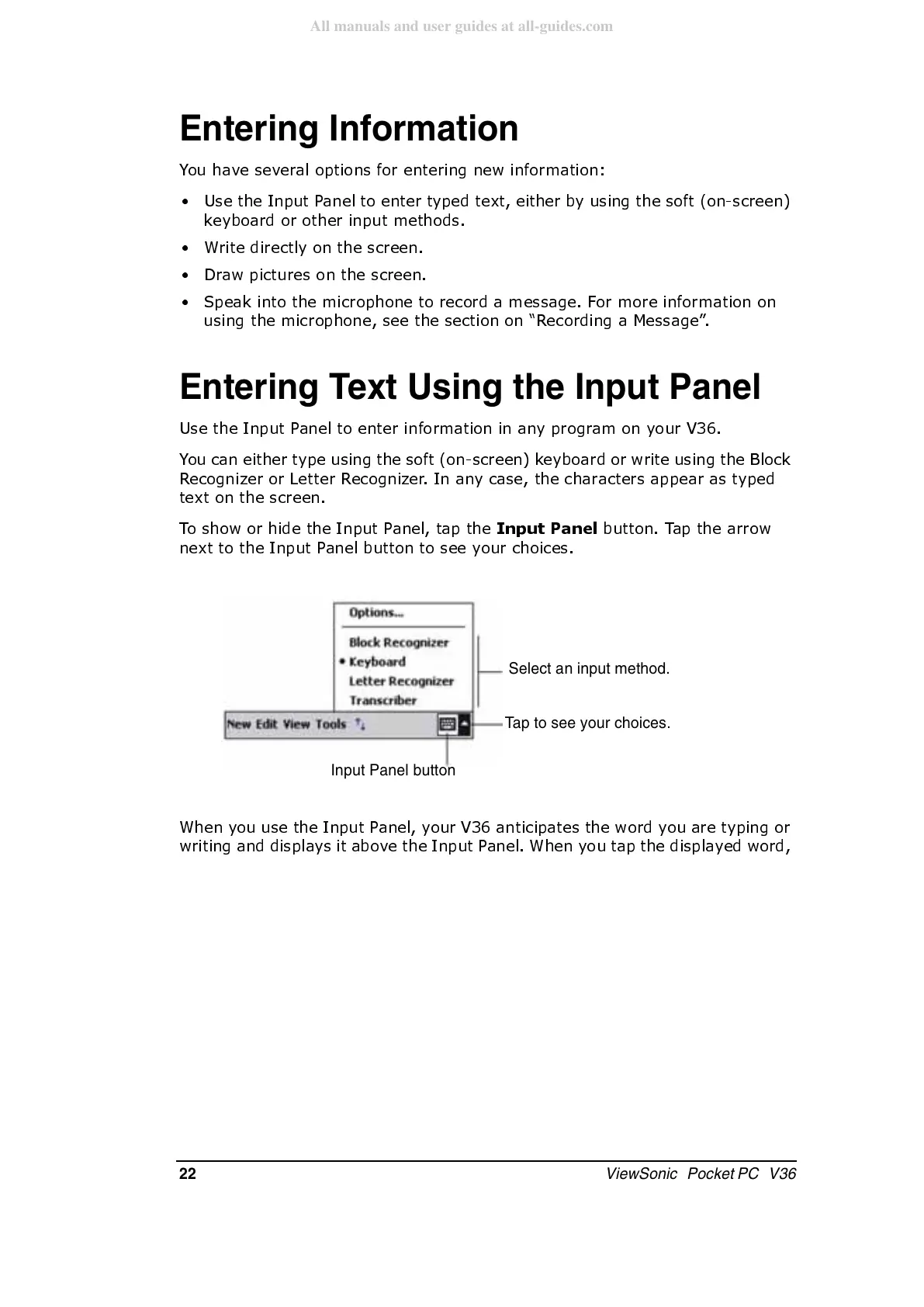 Entering Text Using the Input Panel