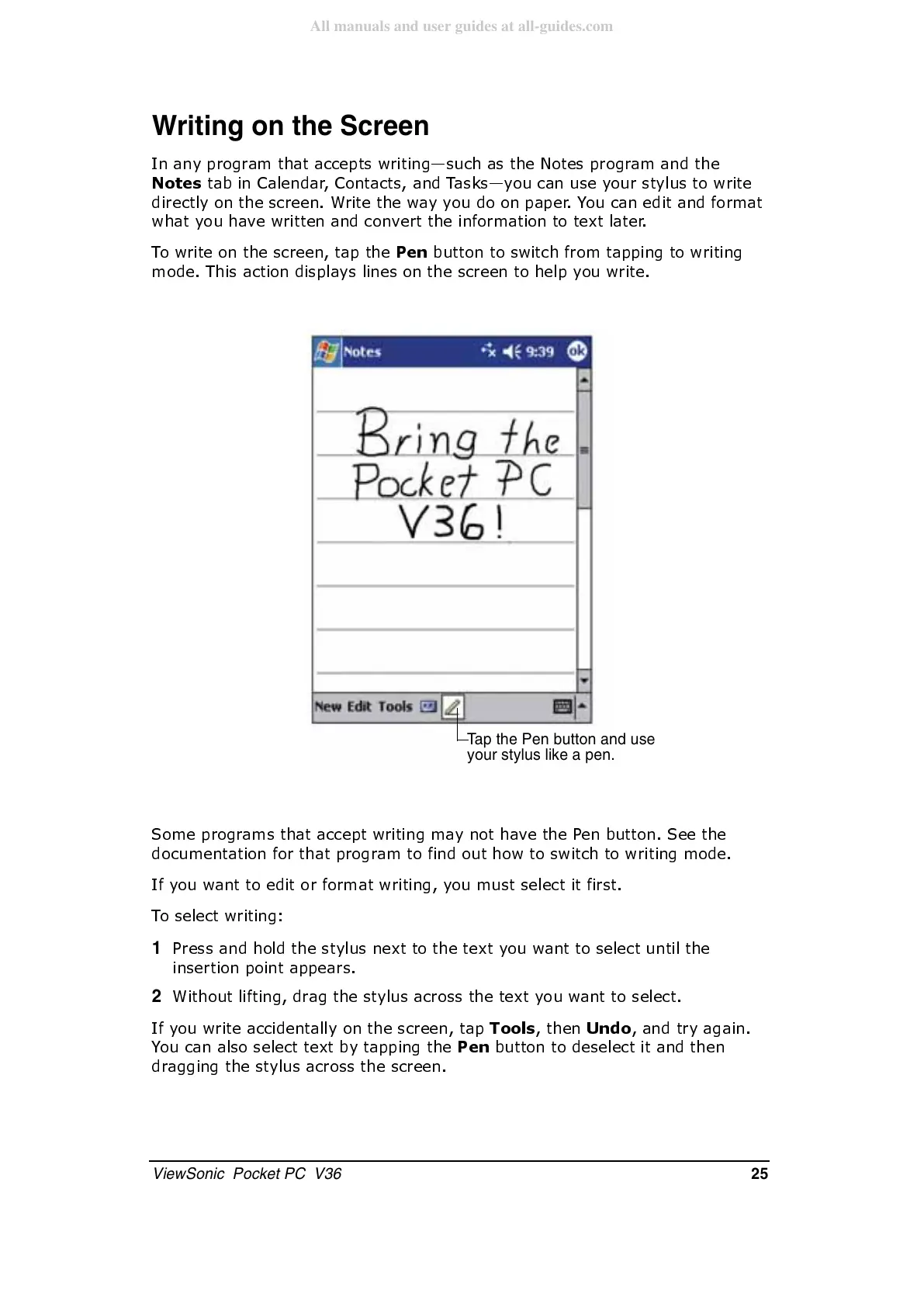ViewSonic Pocket PC V36 - Writing on the Screen