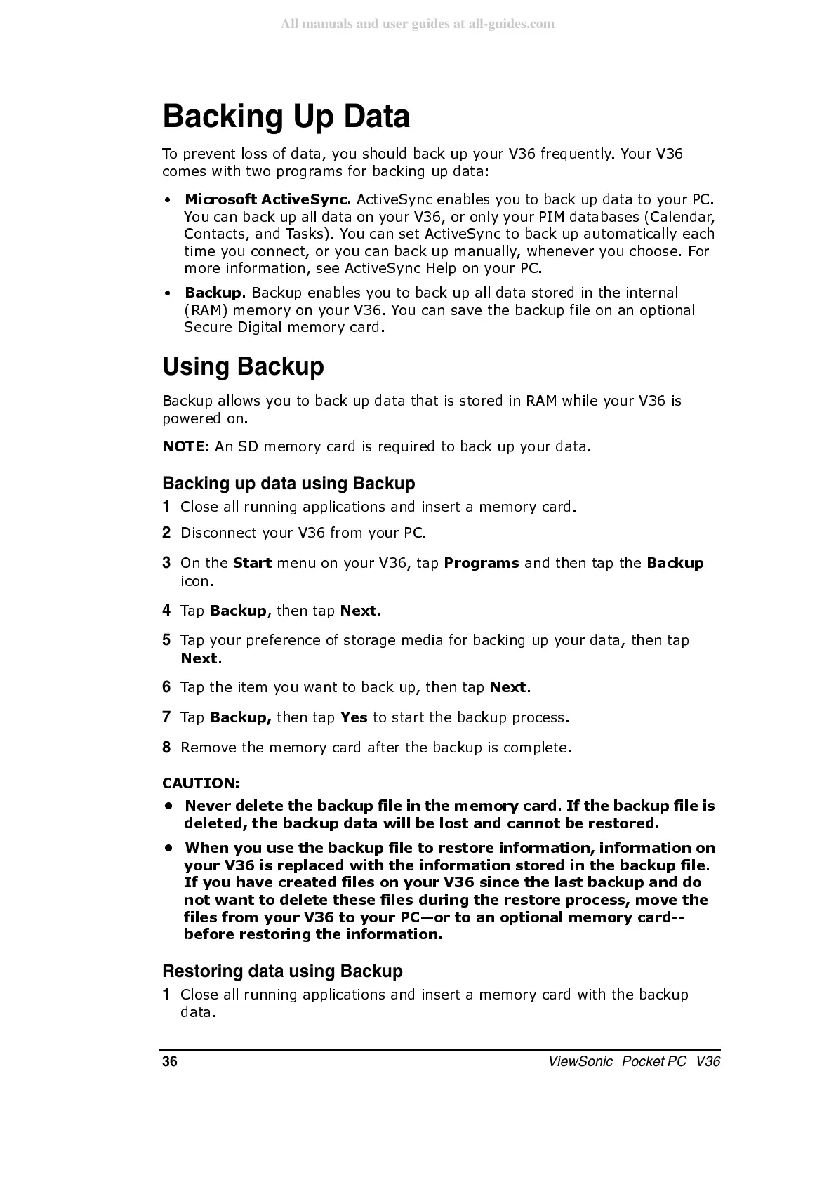 Backing Up Data