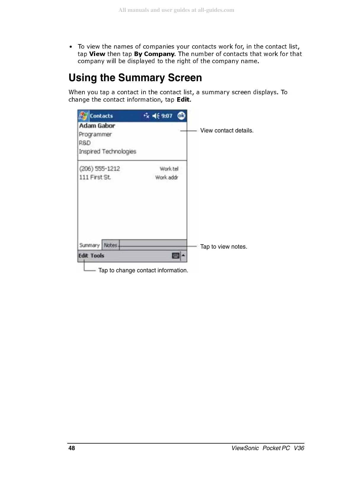 ViewSonic Pocket PC V36 - Using the Summary Screen