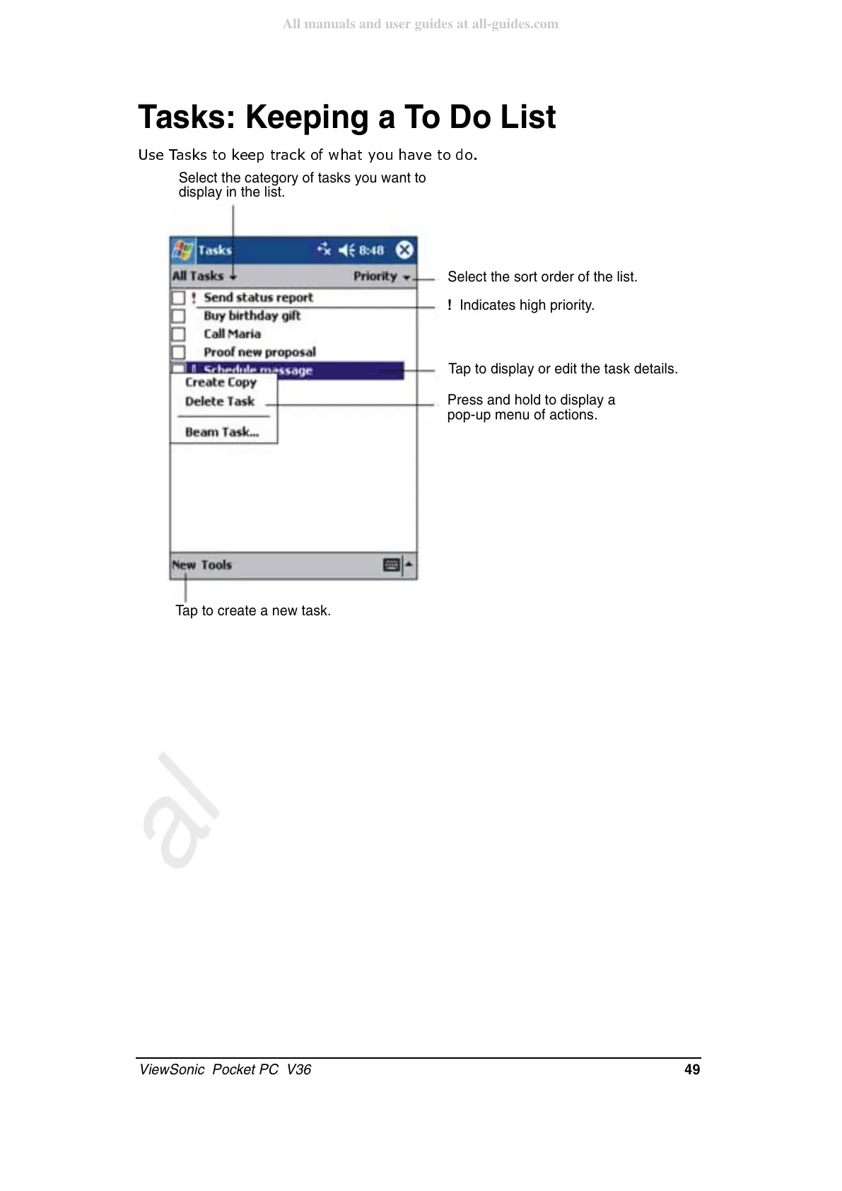 ViewSonic Pocket PC V36 - Tasks: Keeping a to Do List