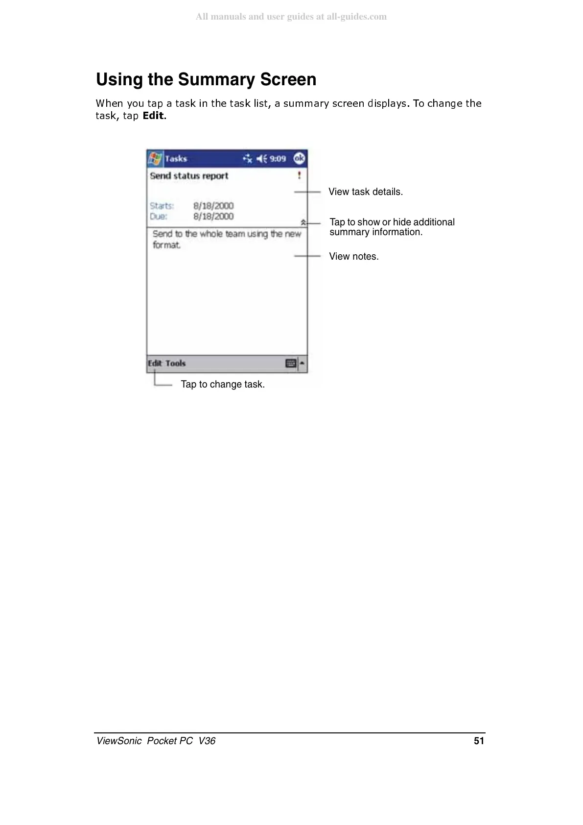 ViewSonic Pocket PC V36 - Using the Summary Screen
