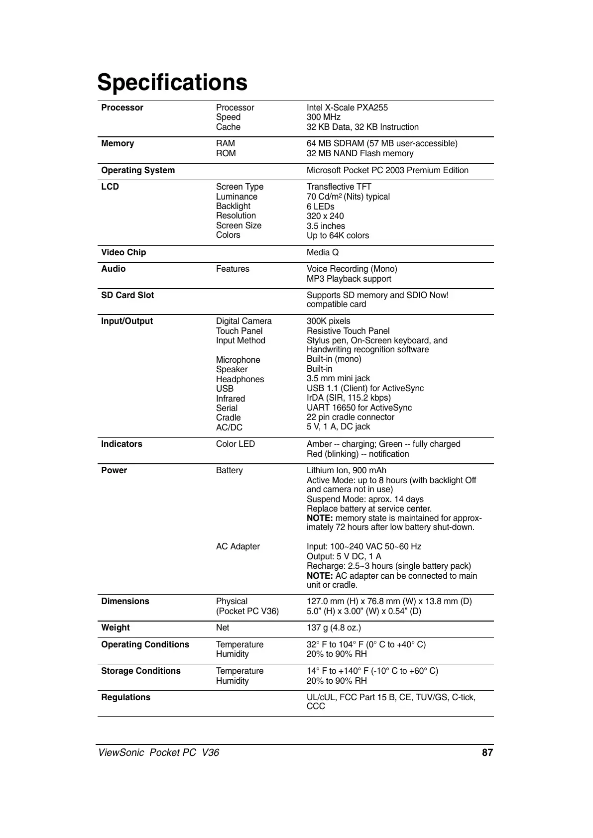 ViewSonic Pocket PC V36 87